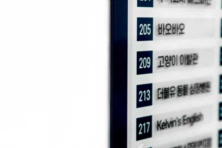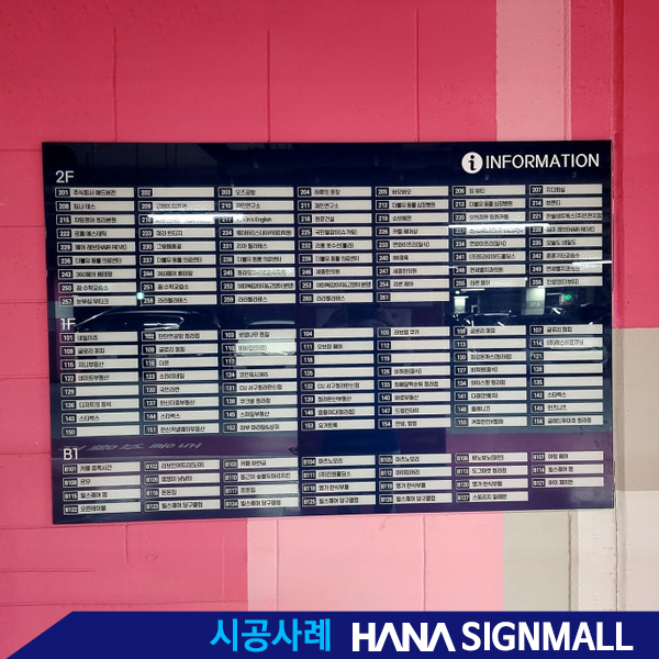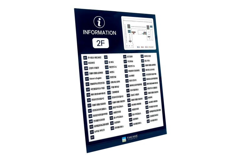 벽면이나 기둥 등에 부착하여 방문자들에게 층별 상호명을 안내할 수 있는데요!