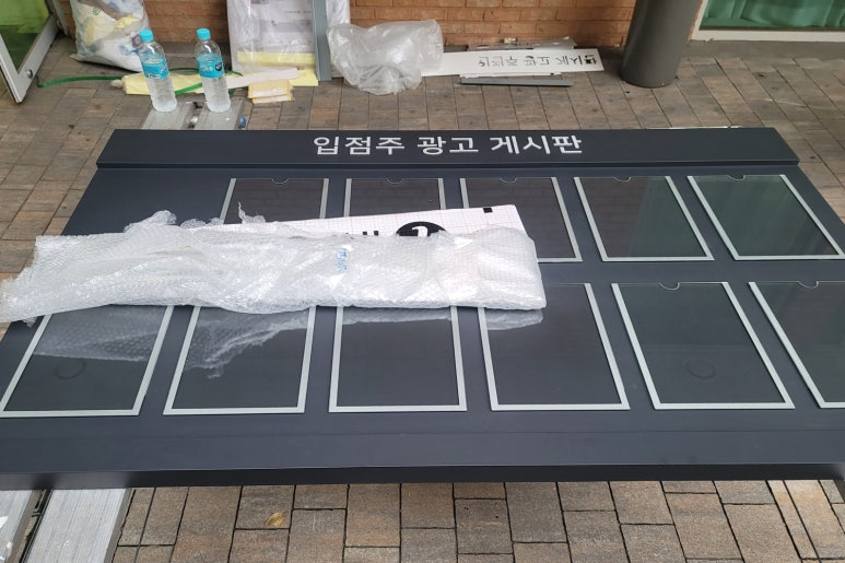 오늘은 청라한신더휴 강화유리 인포메이션 갈바 프레임 게시판 시공 리뷰를 보여드리겠습니다!
