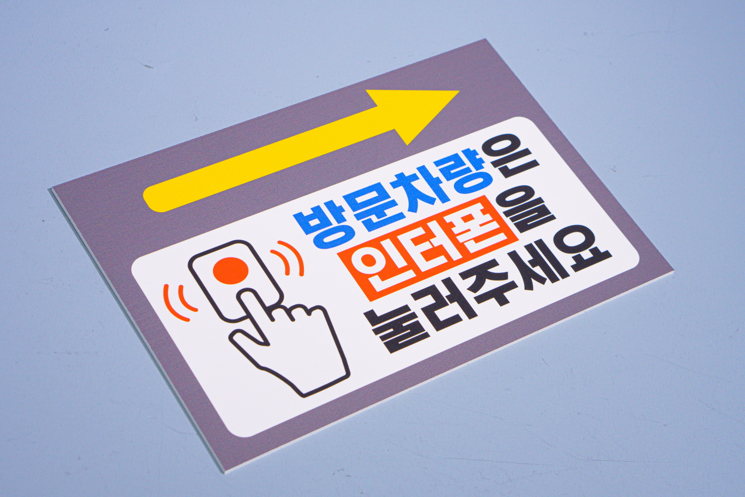 위 안내판은 주차장 입구에 부착하여 방문차량일 경우 쉽게 입차 가능하도록