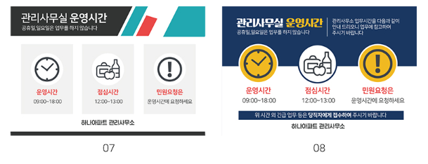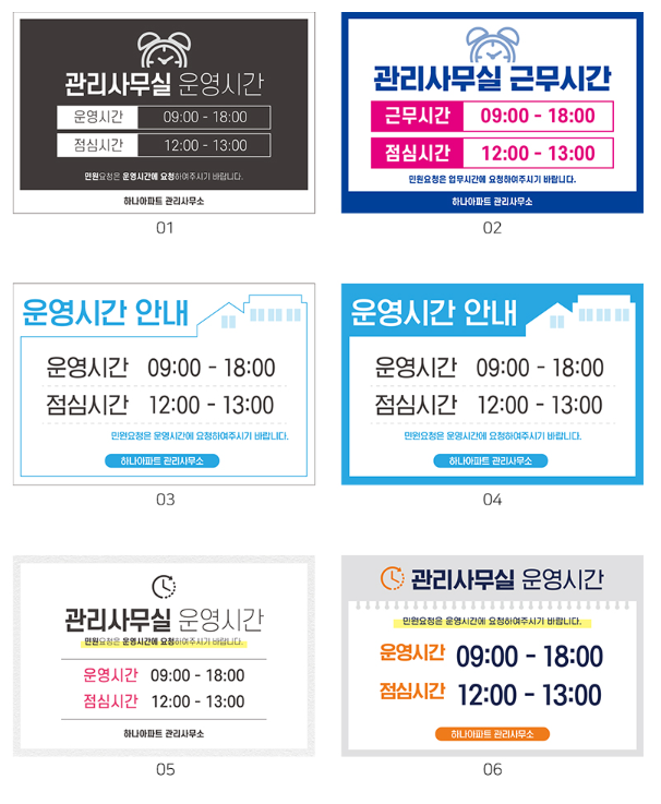 관리사무실 관리사무소 안내판 타입은 각종 샘플디자인도 준비되어 있어요 ~~