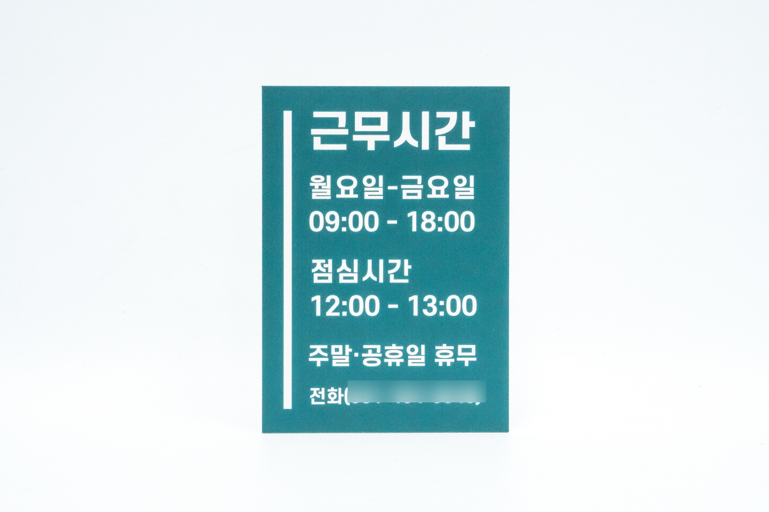 근무시간 및 점심시간 , 휴무를 알리는 안내판 타입 입니다 !