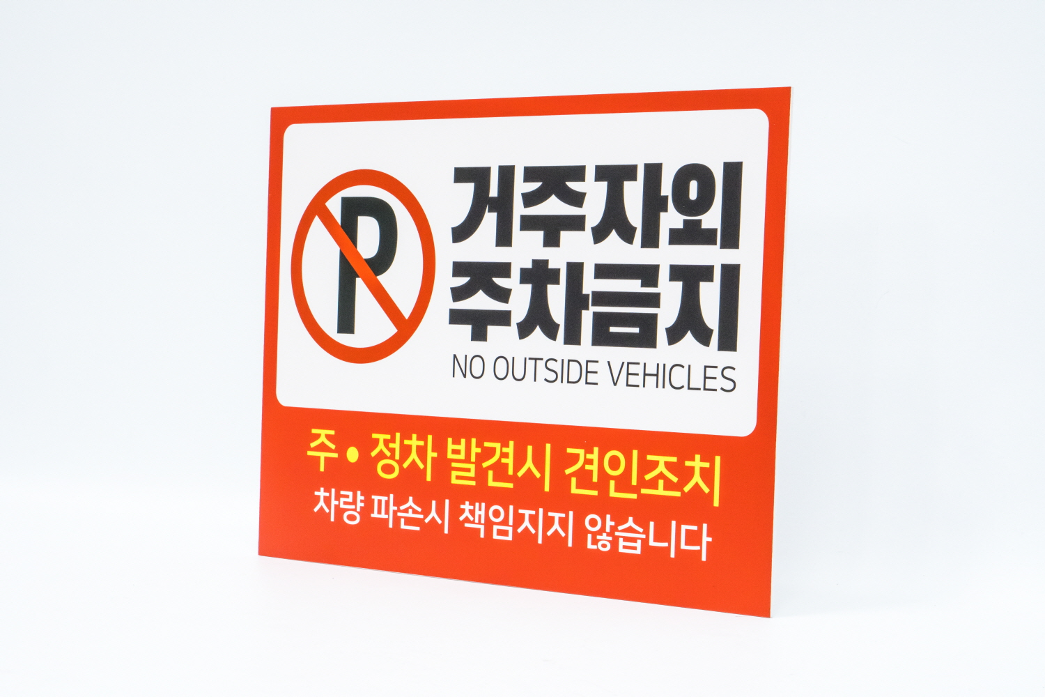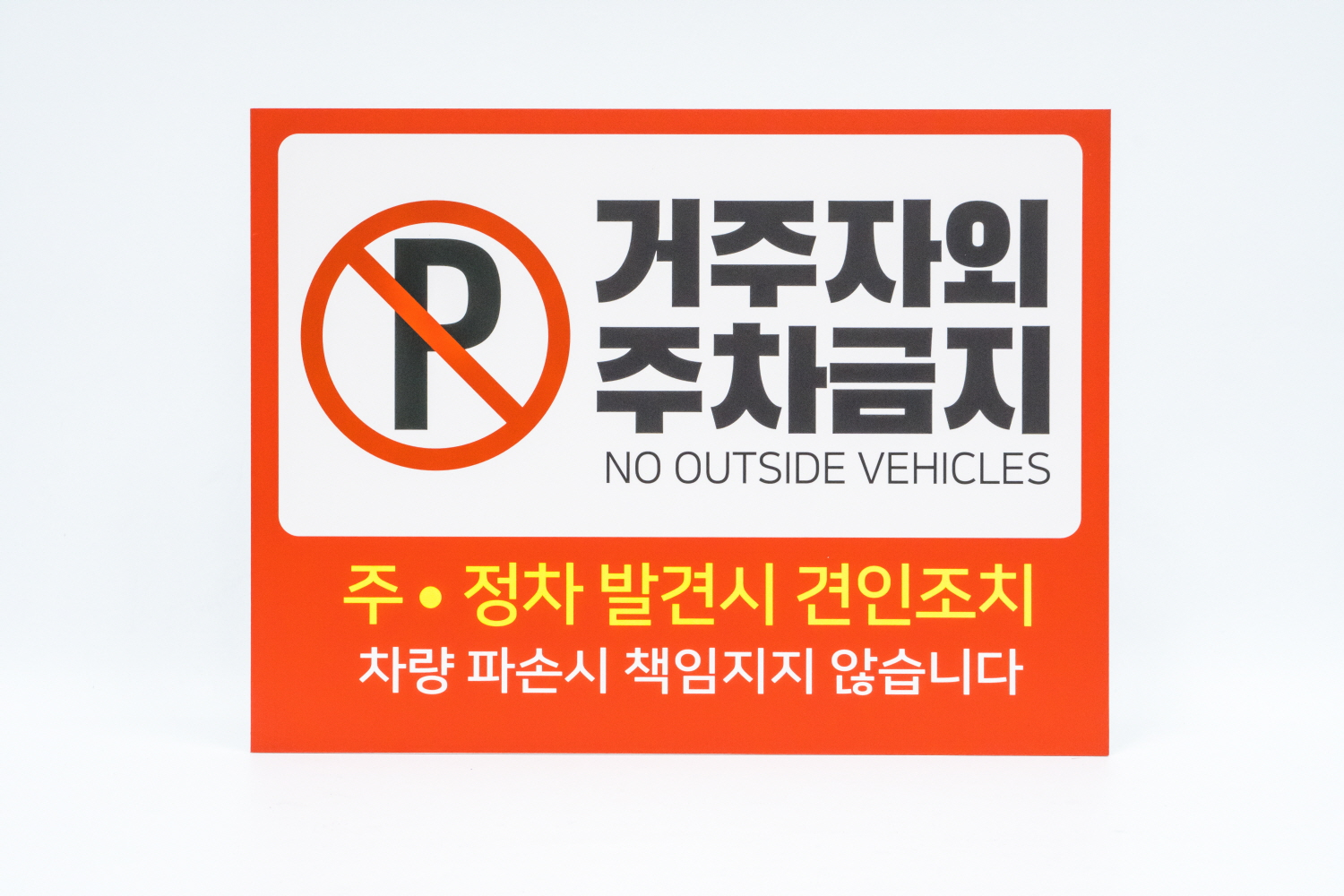 거주자외 주차금지 표지판은 눈에 띄는 디자인으로 외부차량을 경고 할수 있겠어요 !!