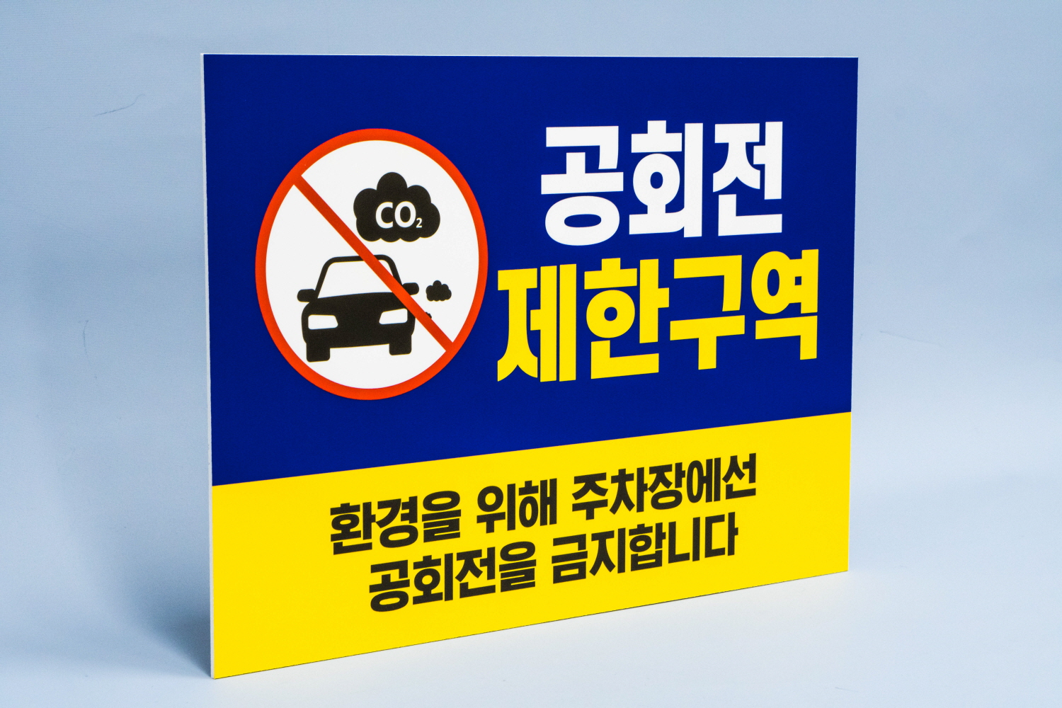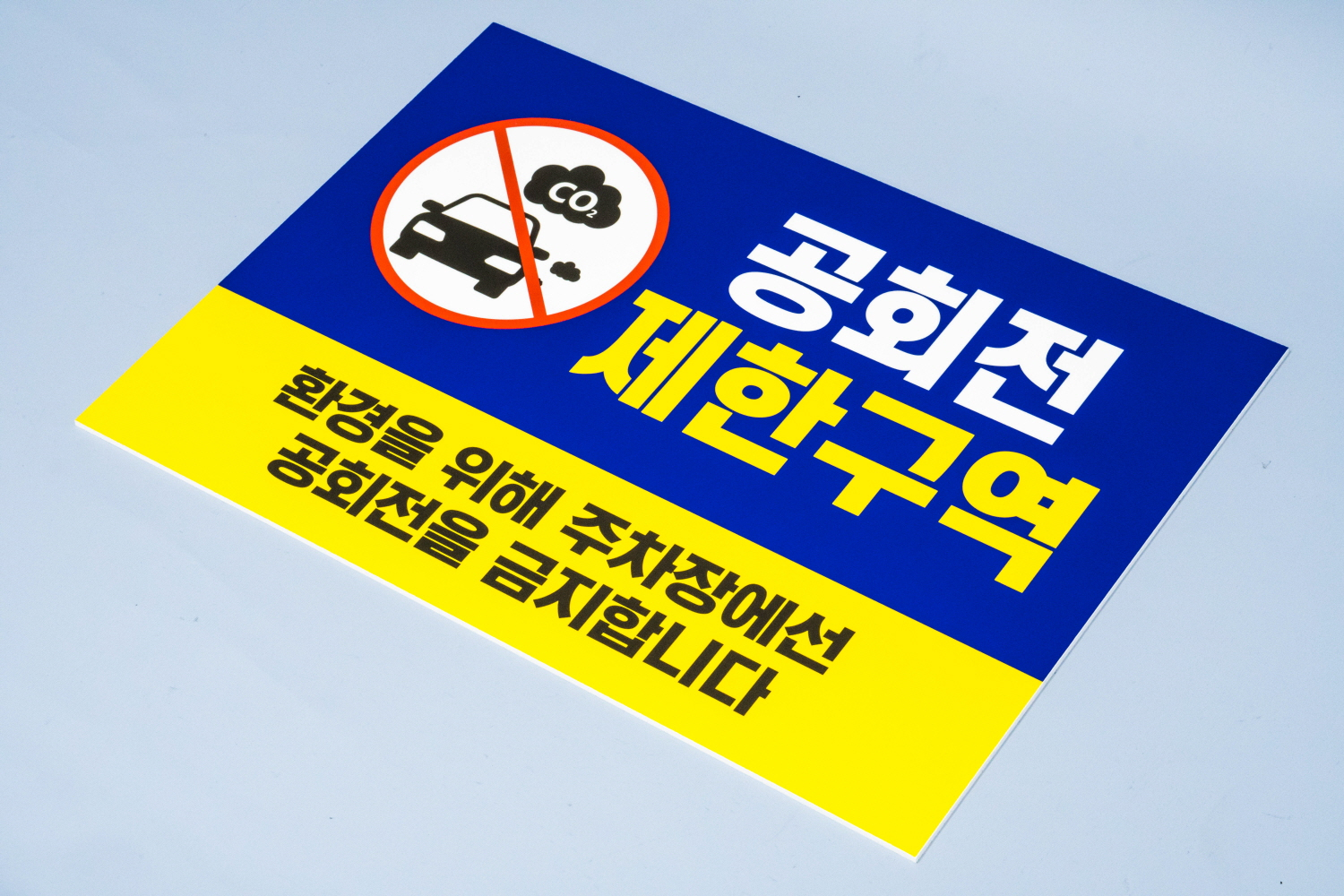 위 안내판을 주차장에 부착하여 차량 공회전 을 금지 경고 시킬 수 있겠어요 ~~
