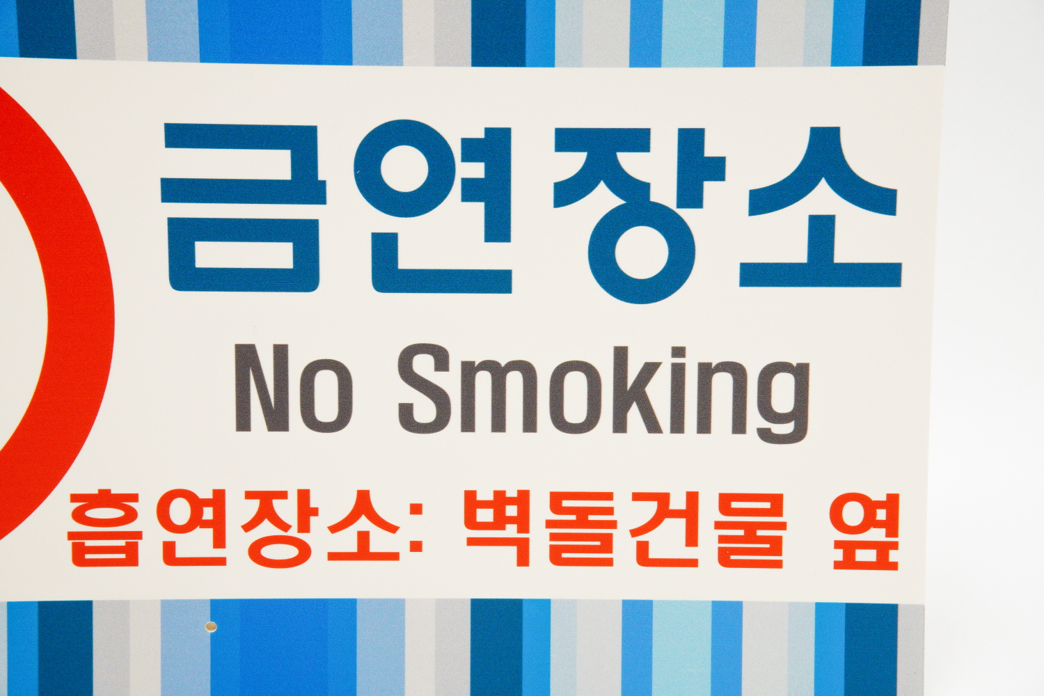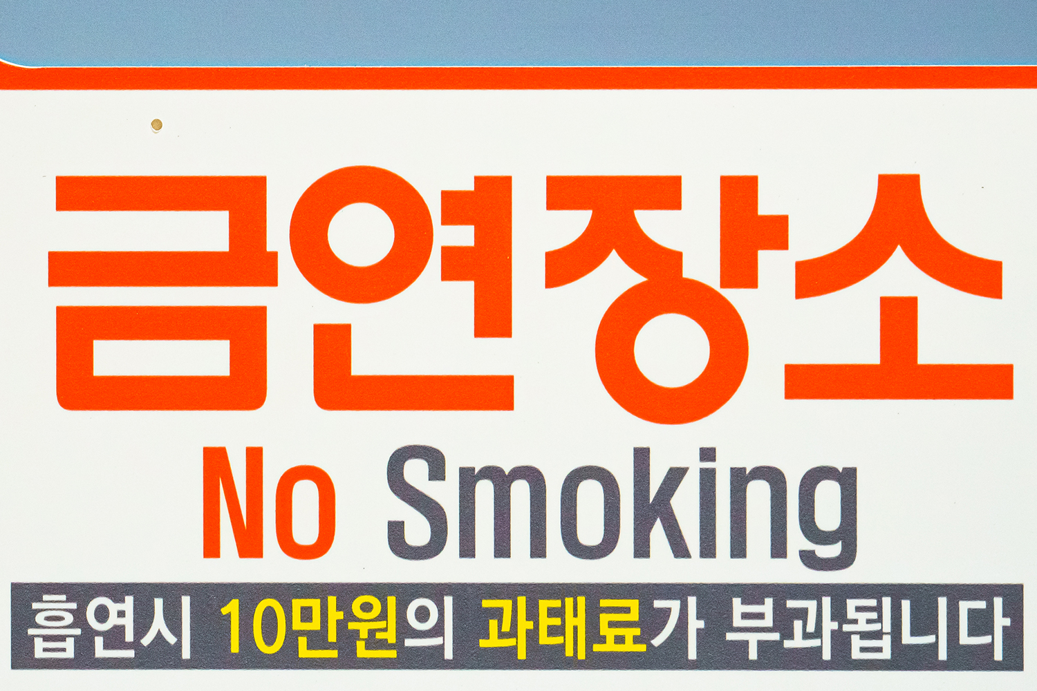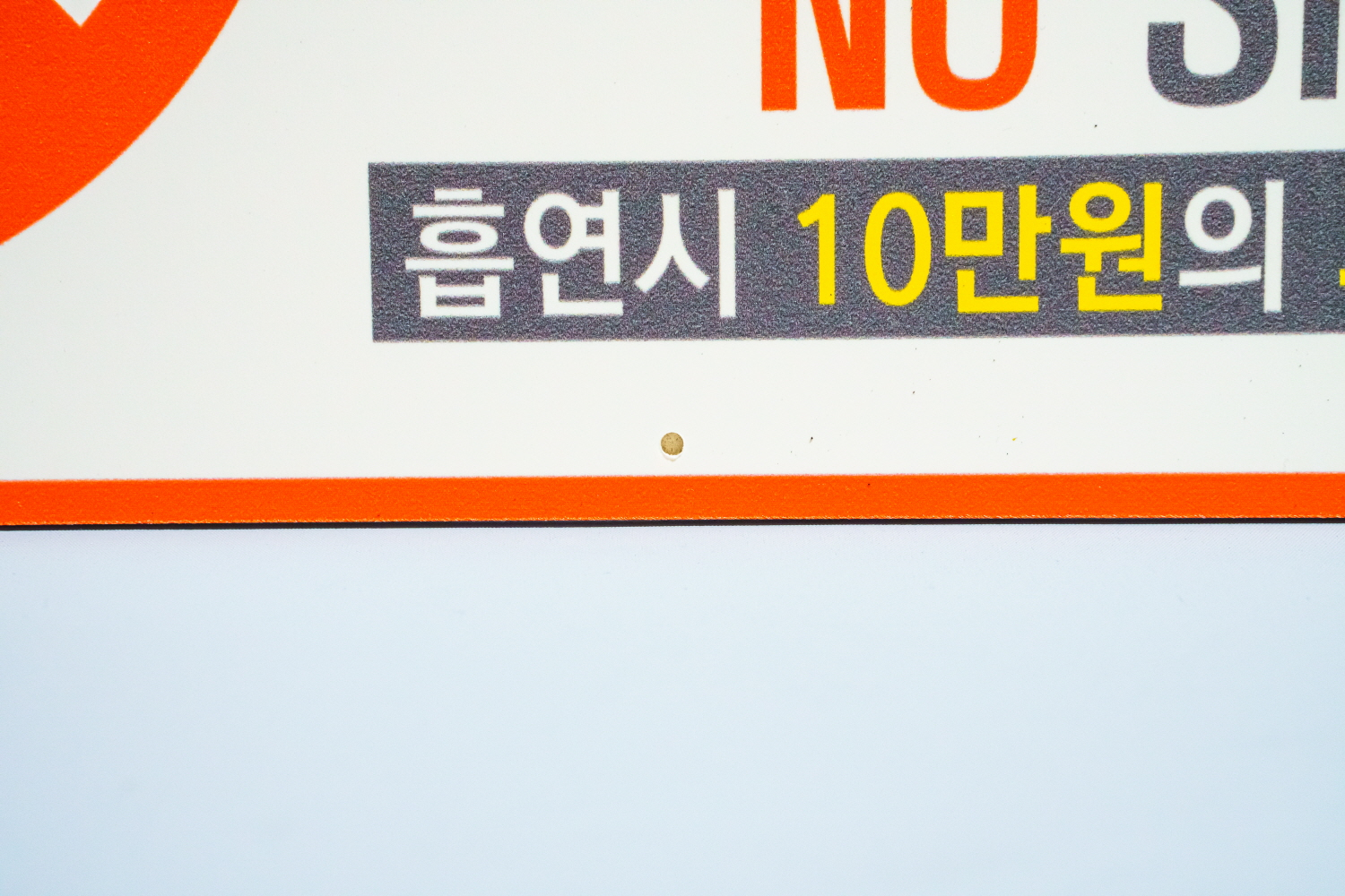 금연구역 말뚝 안내판을 가까이서 촬영한 모습입니다.