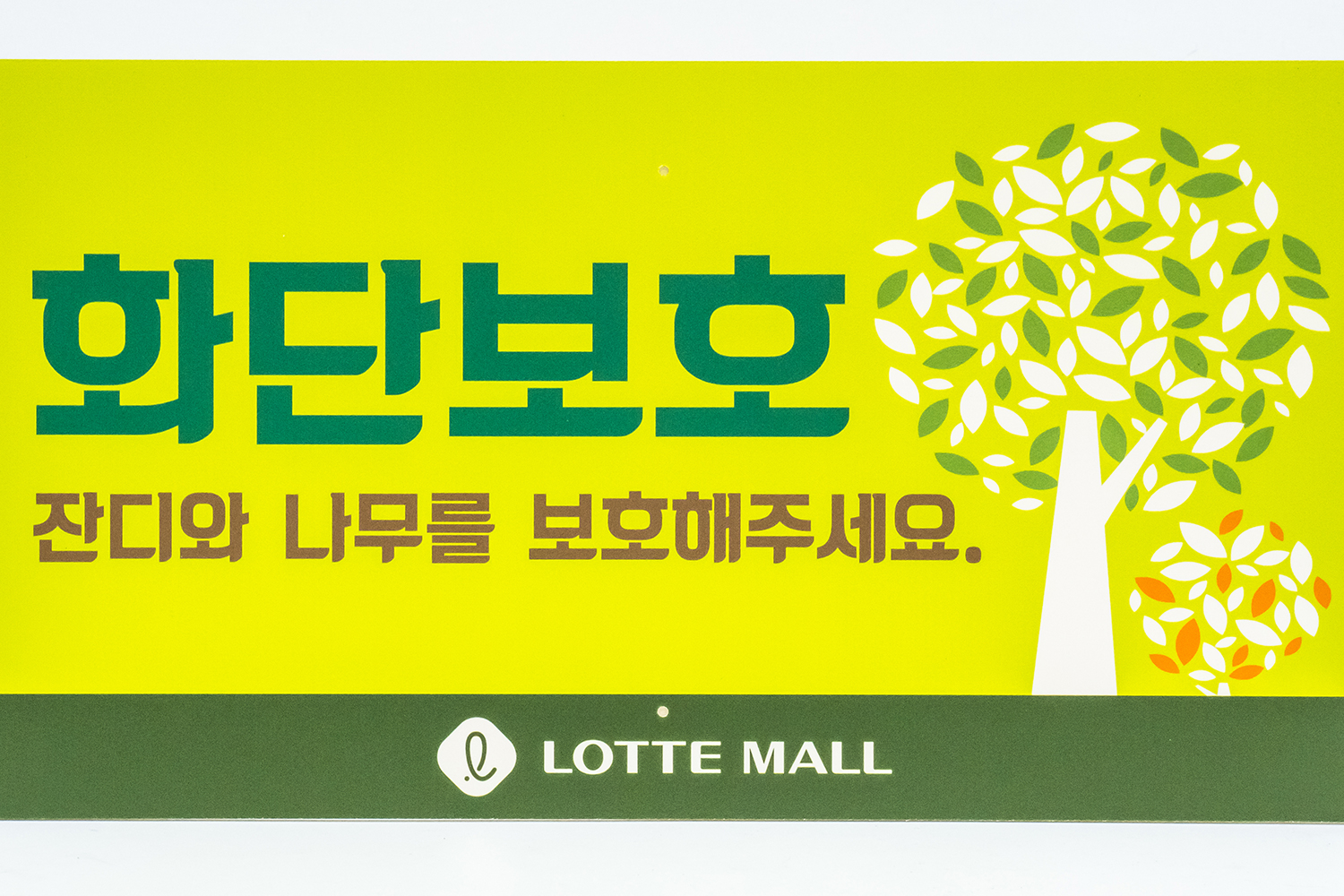 화단 보호 장소임을 알리는 매립식 표지판 입니다.