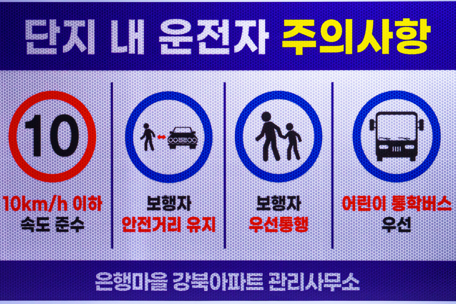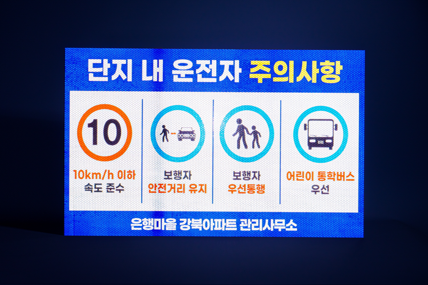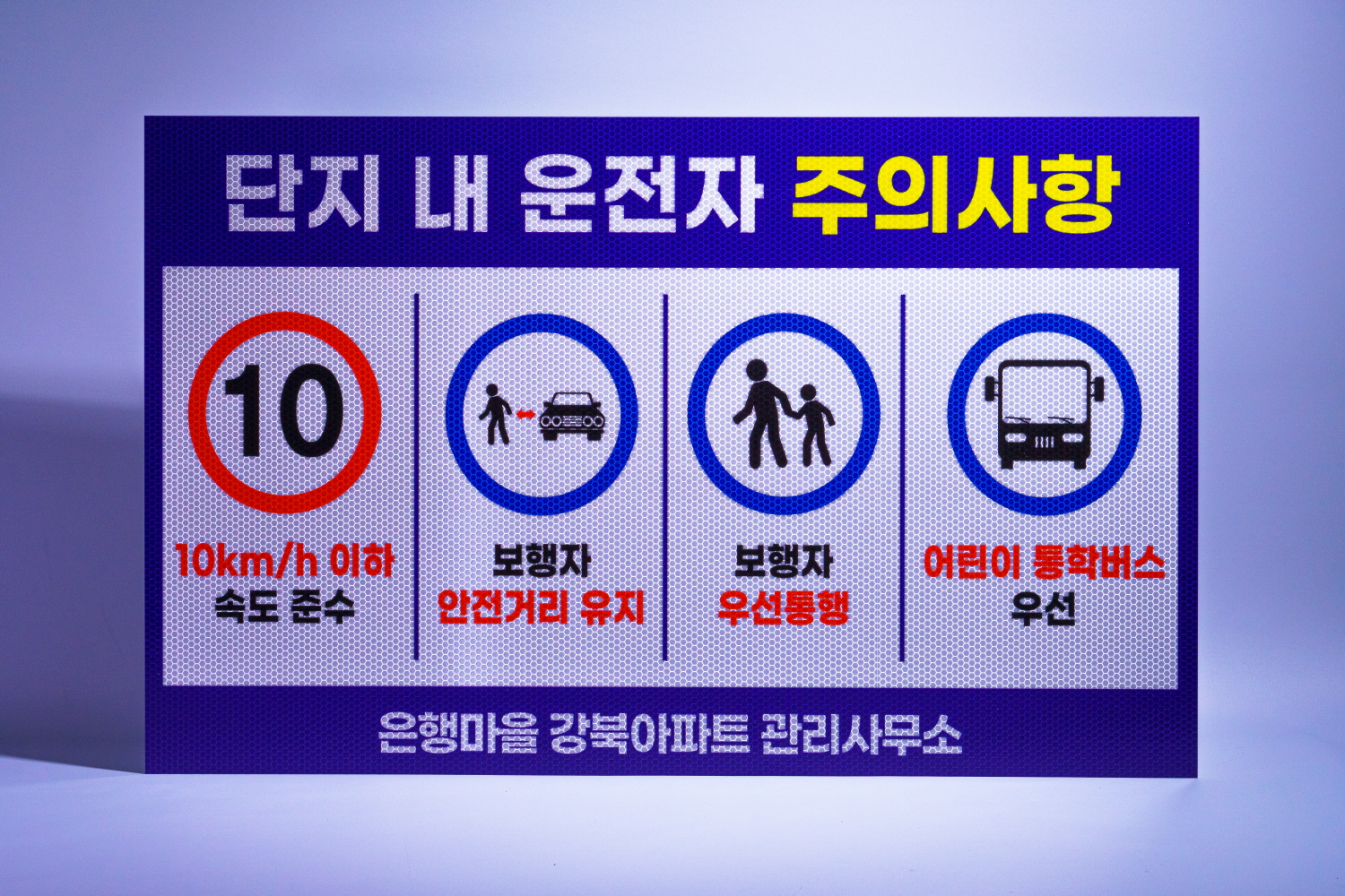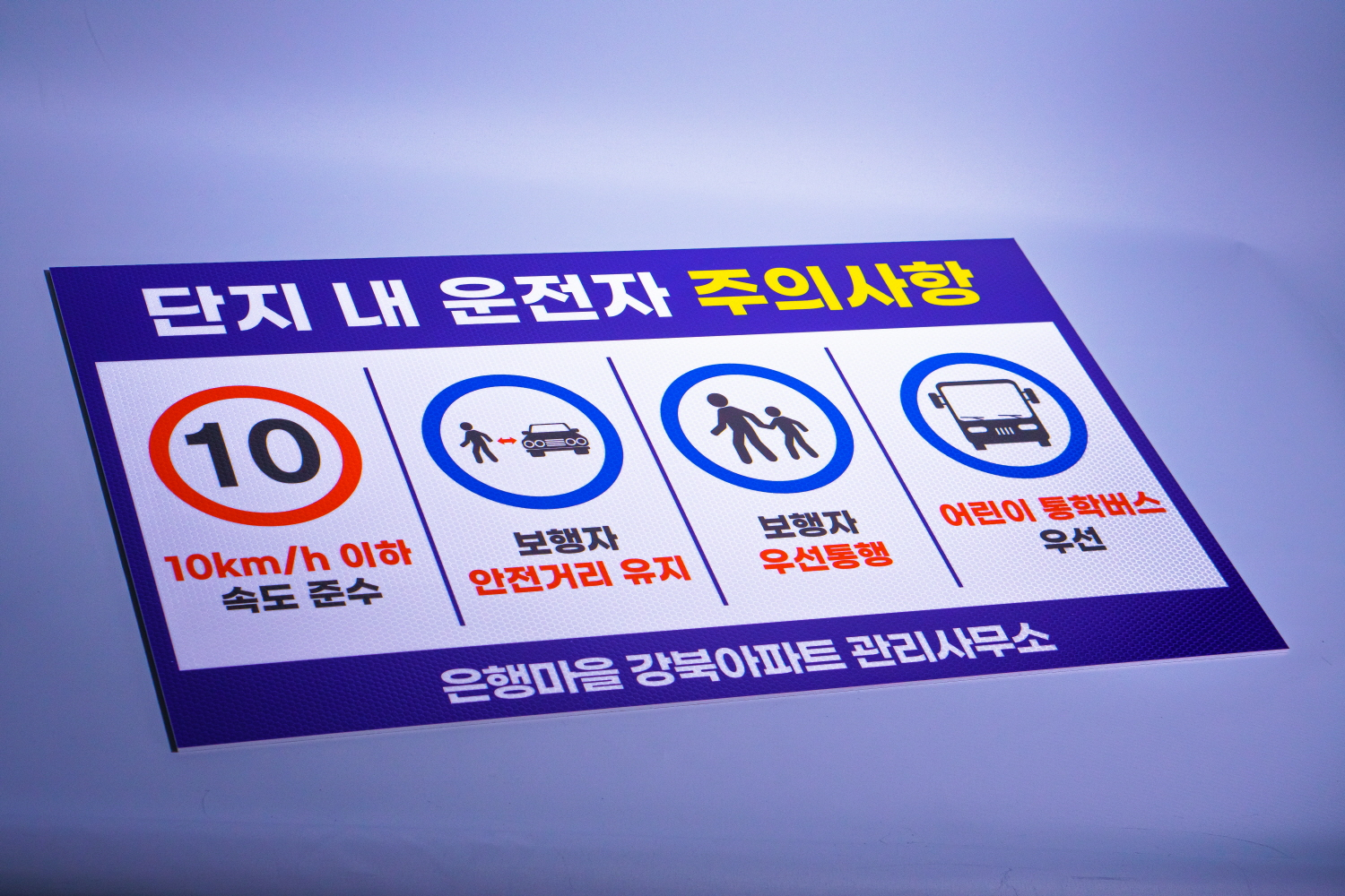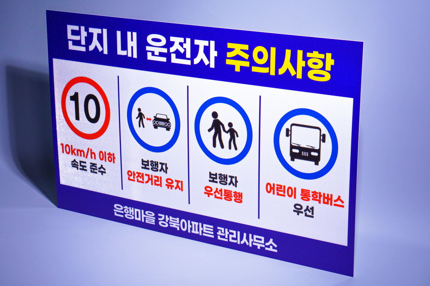 은행마을 강북아파트 에서 주문해 주신 단지 내 운전자 주의사항 안내판 입니다.