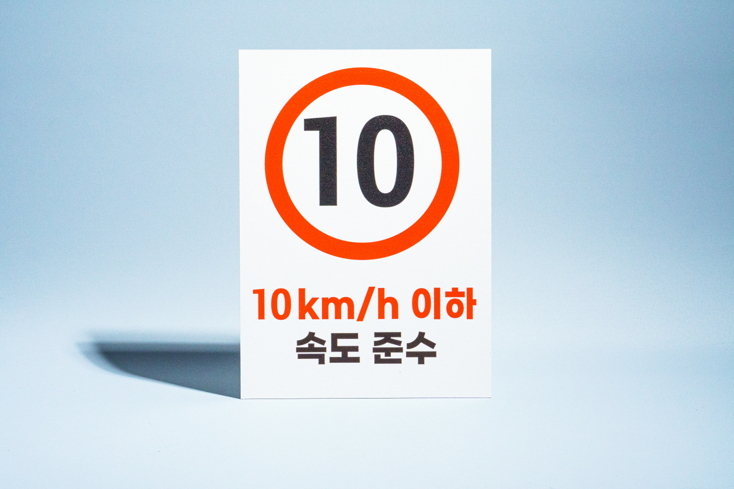 속도 준수 표지판 을 부착하여 제한속도를 지킴으로써 안전하게 운전 할 수 있습니다.