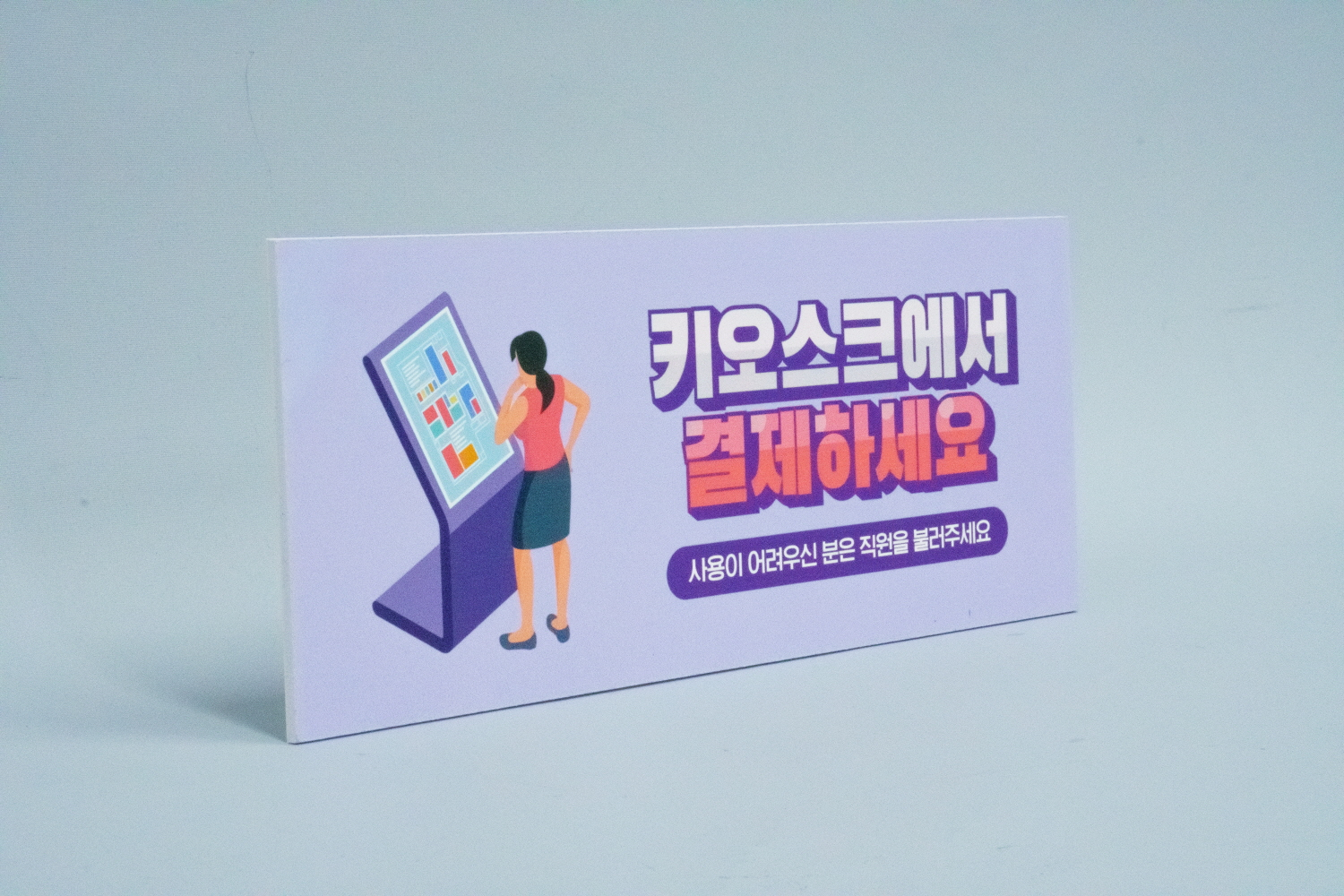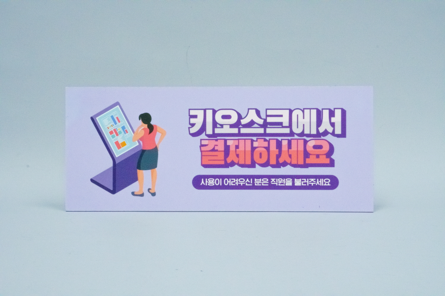 키오스크 결제 상품은 안내판 타입과 스티커 타입으로 제작되며