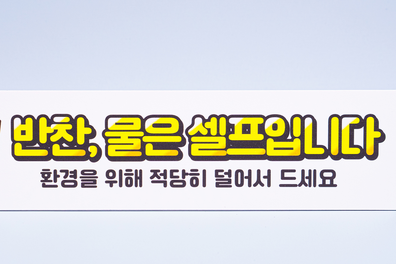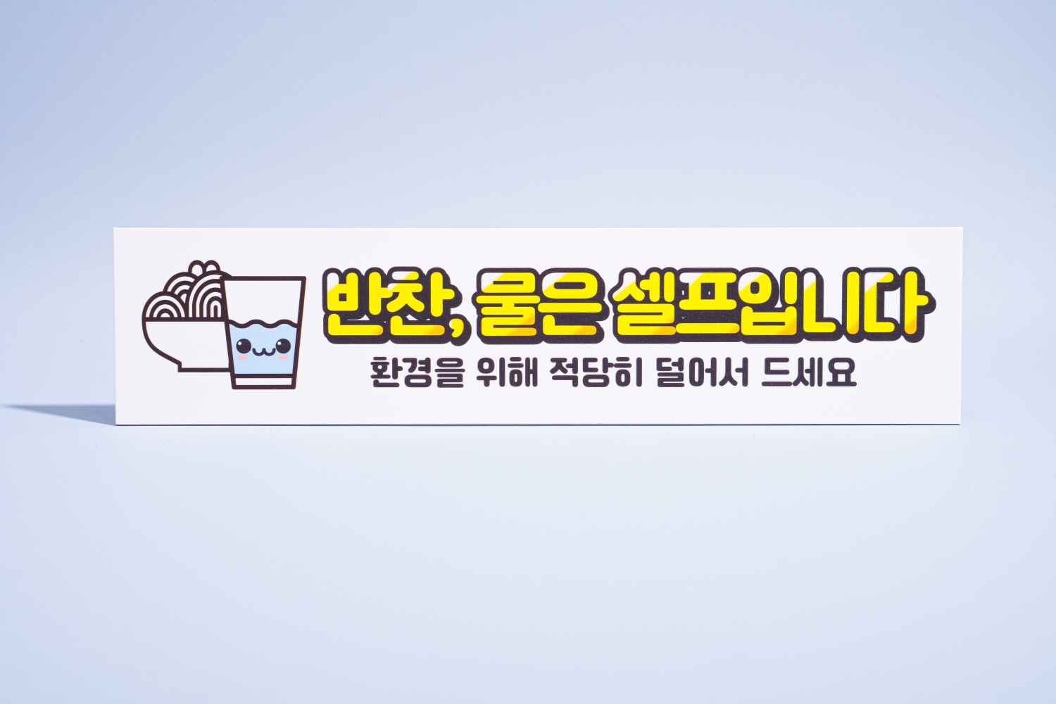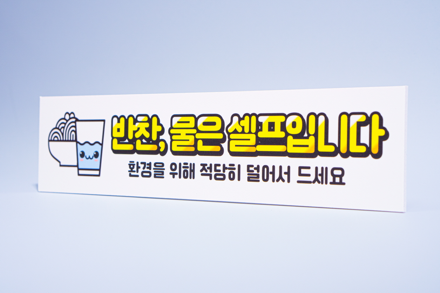 물, 반찬 은 셀프로 가져가야 하는 것을 알리는 안내판 입니다.