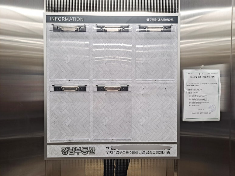 아파트 엘리베이터 게시판 사례입니다