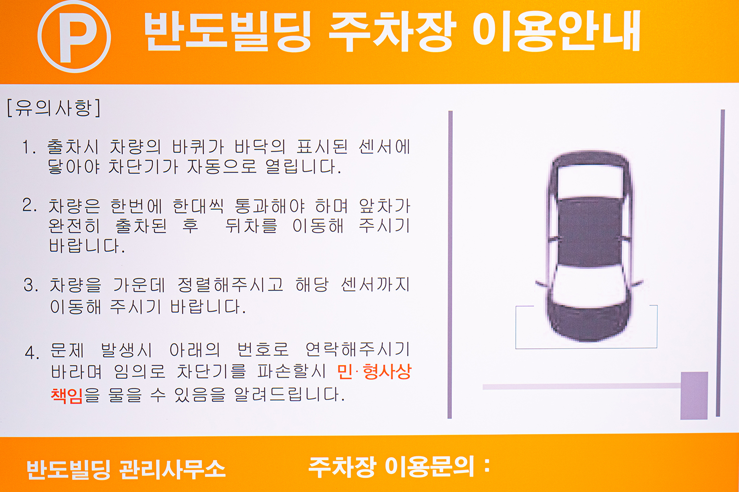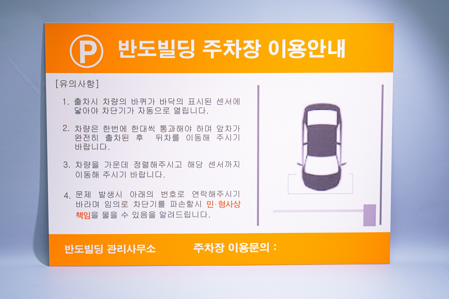 반도빌딩에서 주문한 주차장 이용 안내판 입니다.