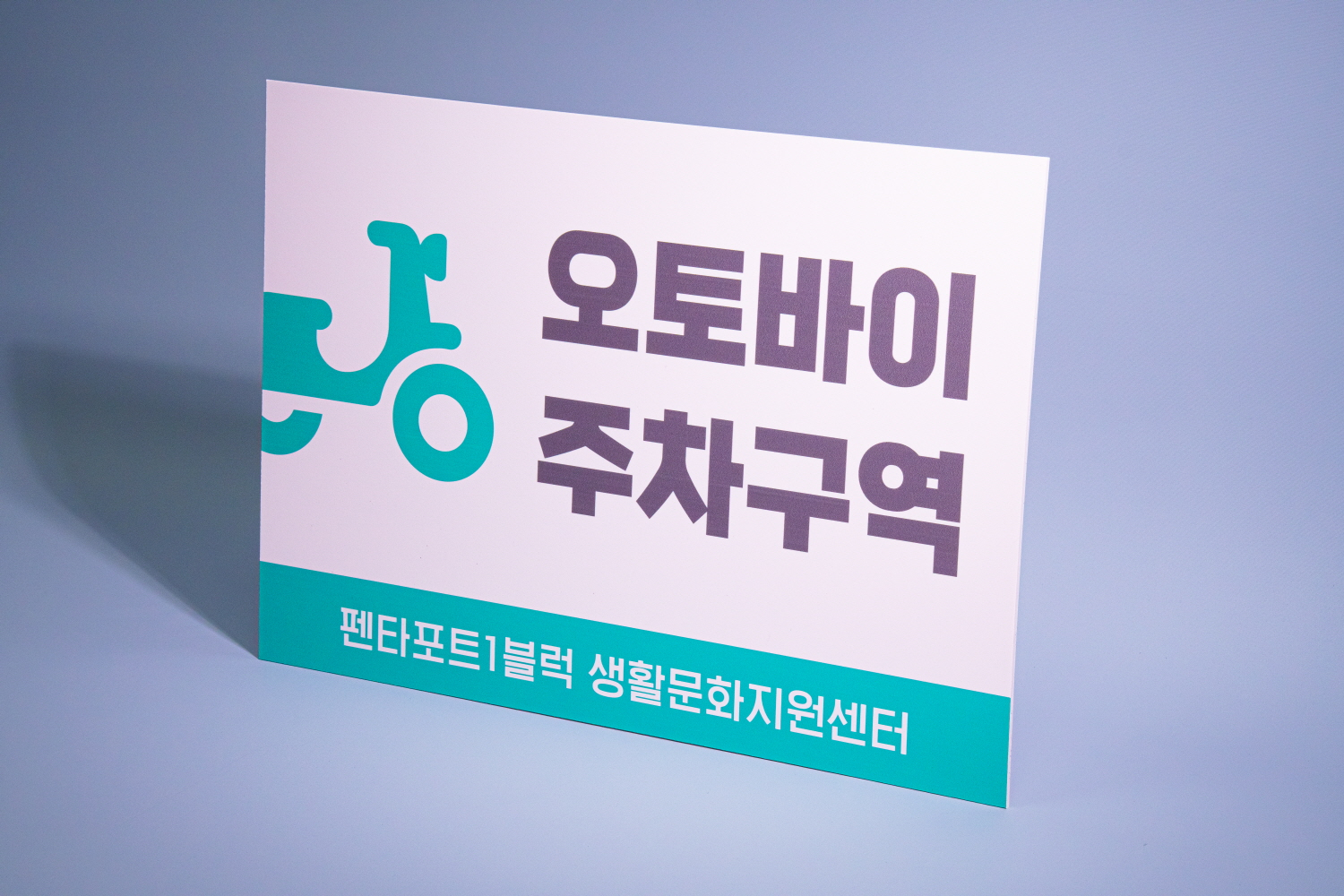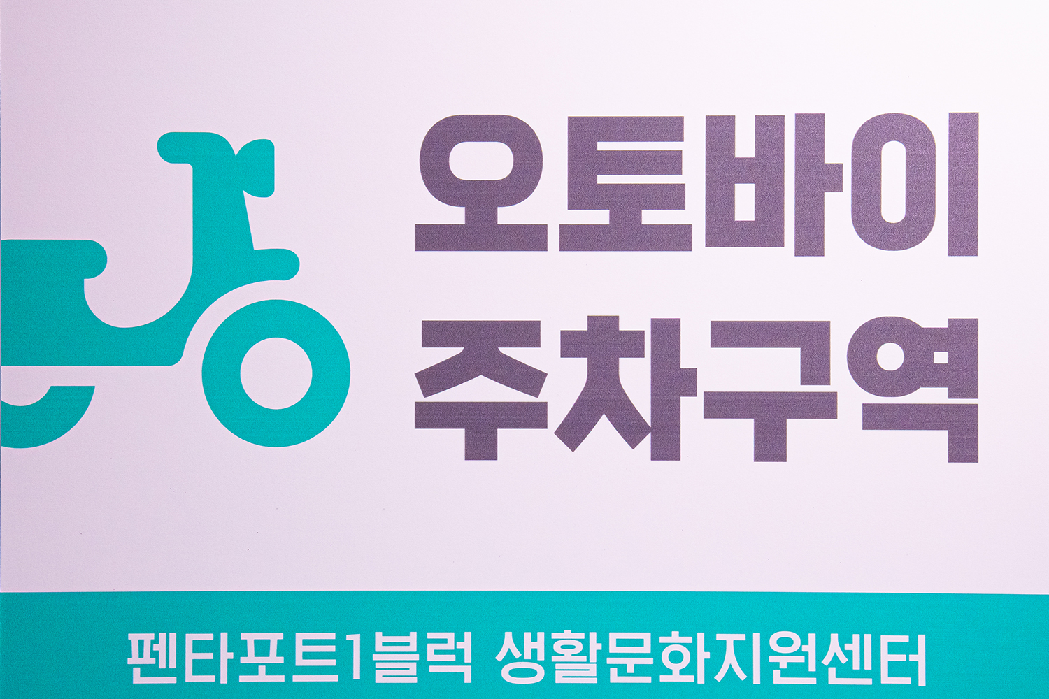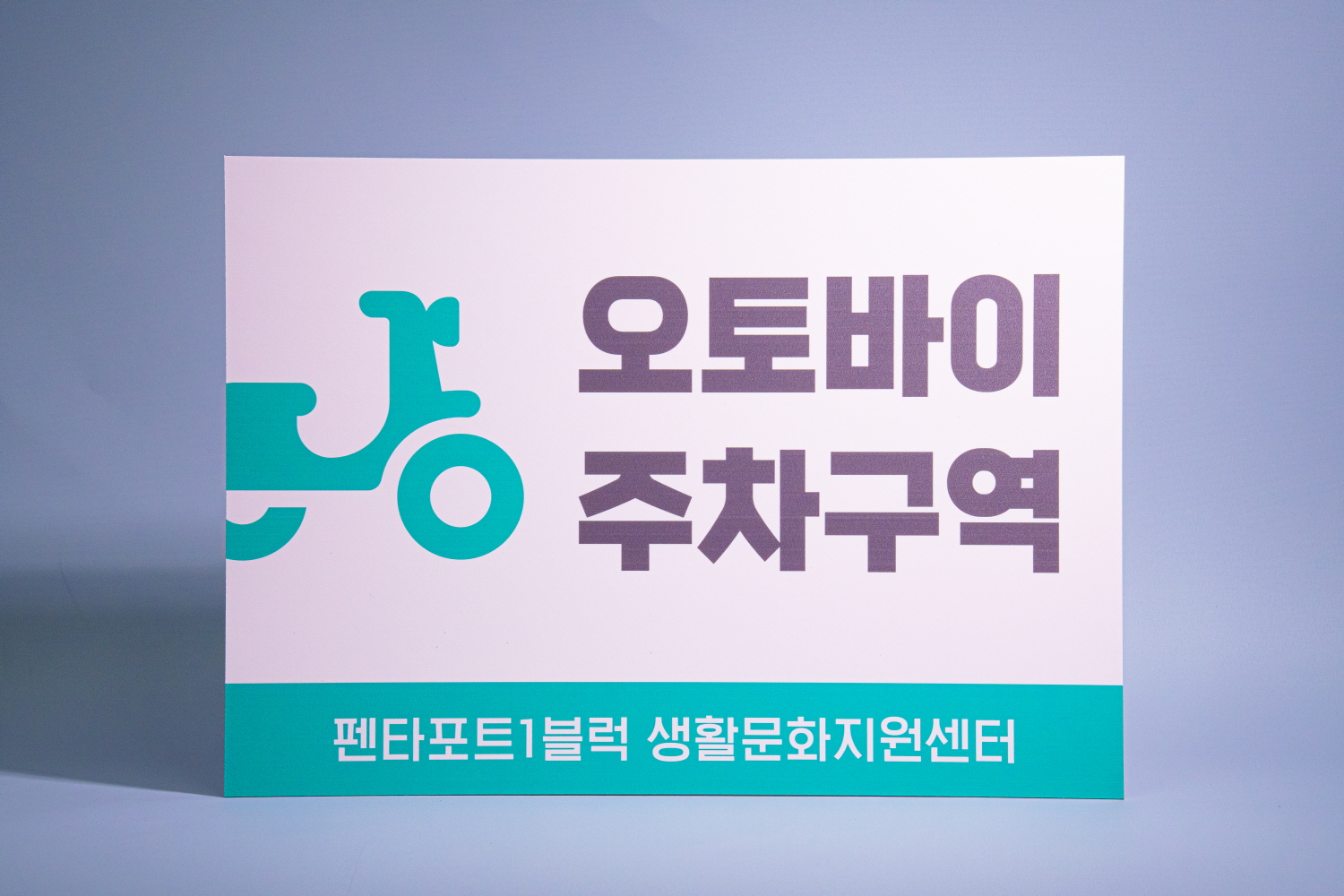 위에 보여드린 자동차 주차구역 이외에 오토바이 주차구역 안내판도 준비되어 있습니다.