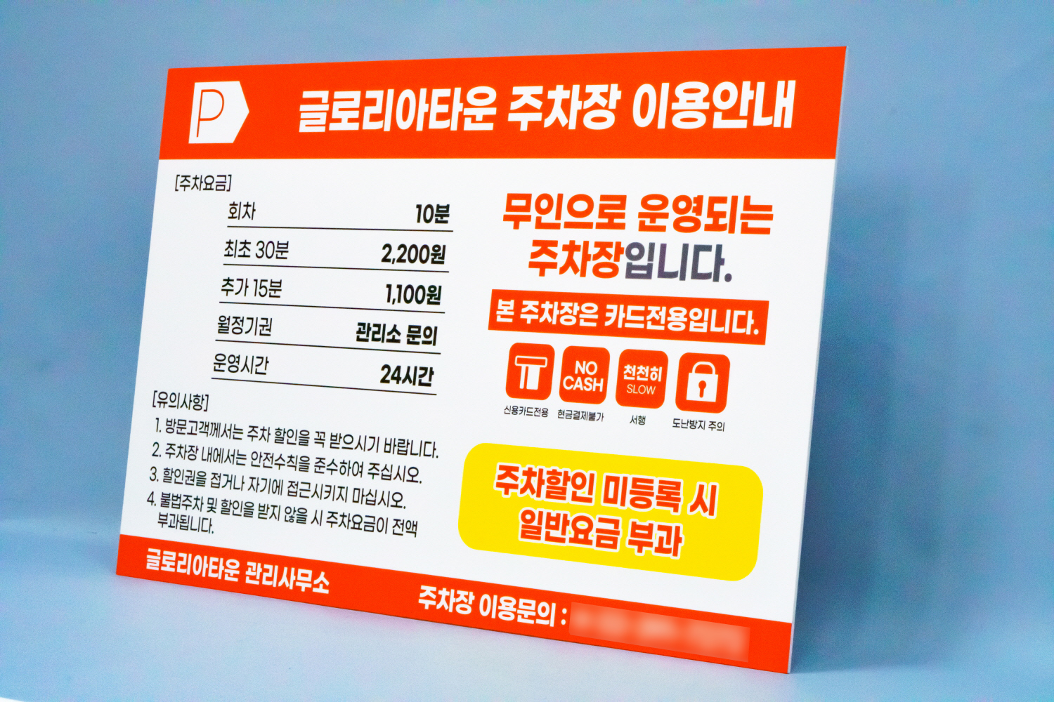 방문한 고객 전용 주차장 위치를 알리기 위해 주문해 주셨습니다.