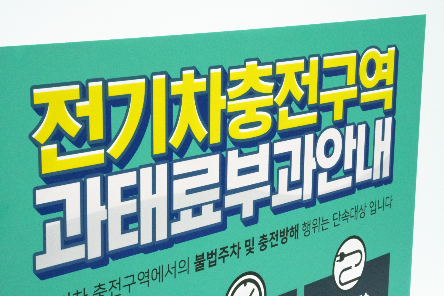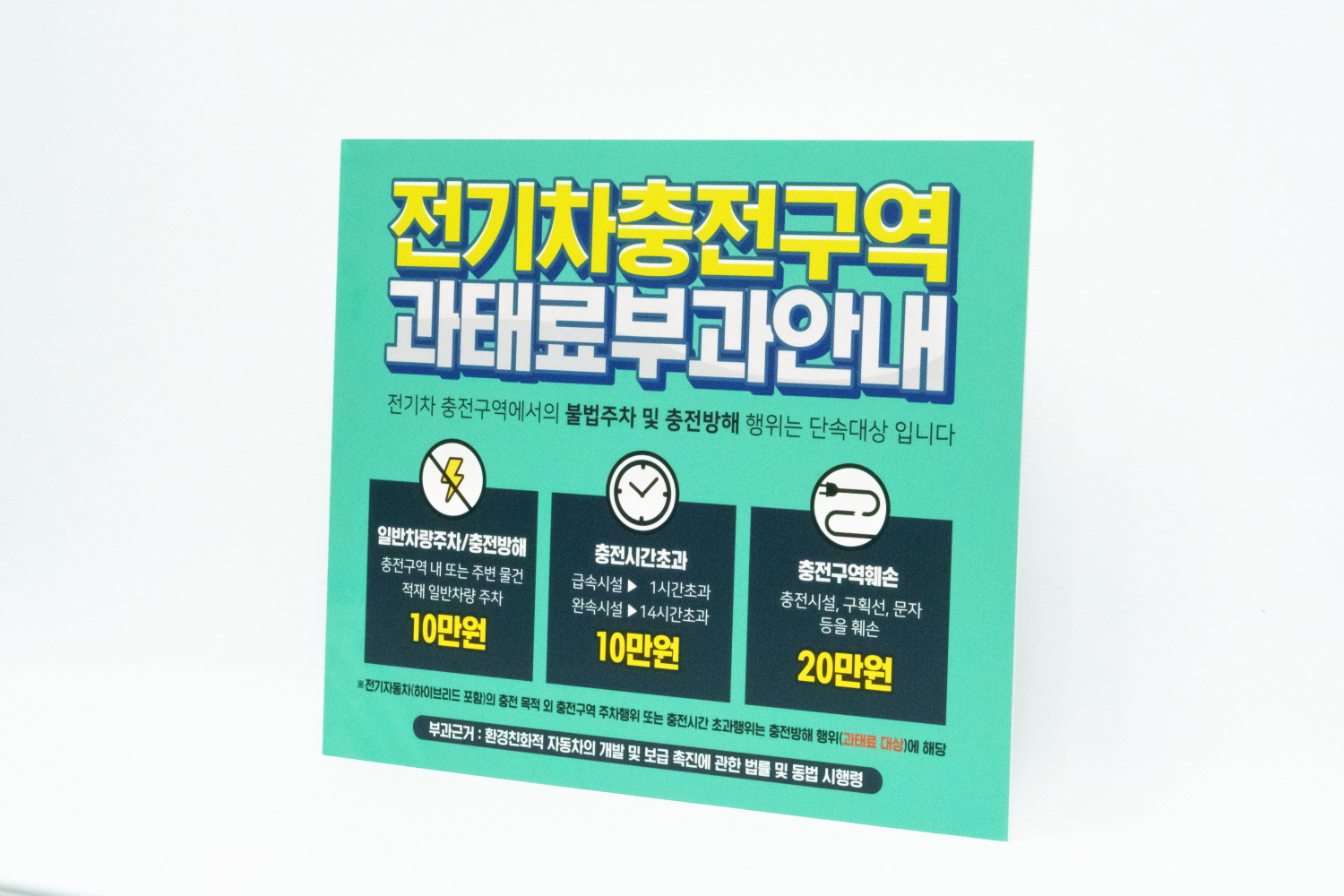 아파트 단지내 전기 차량 이외 다른 차량이 주차하지 못하도록 안내판을 주문해 주셨습니다.