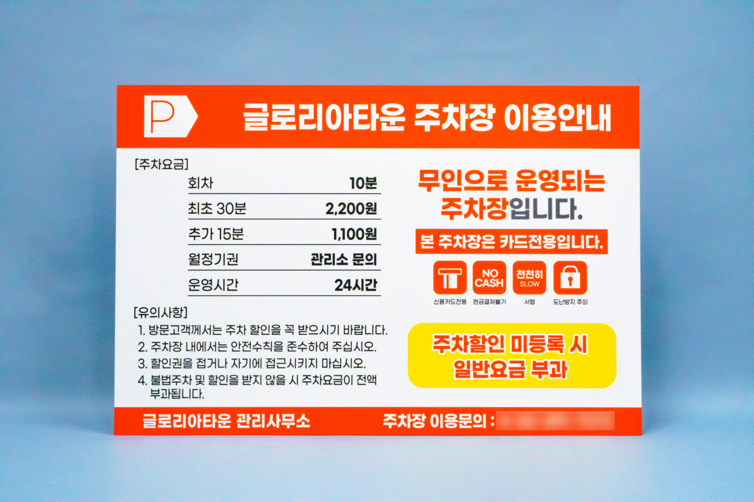 고객전용 주차장 안내판, 주차장 이용 안내판,
