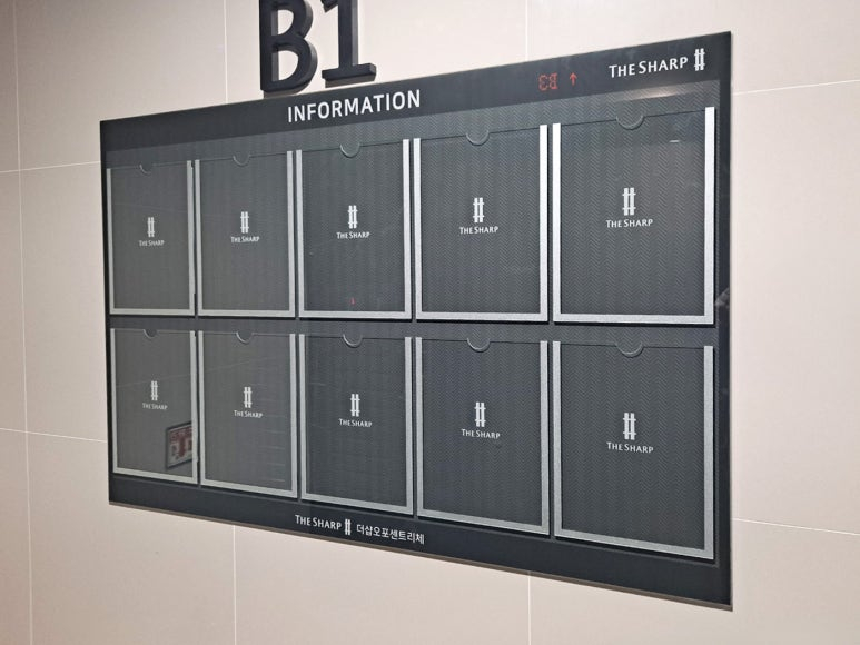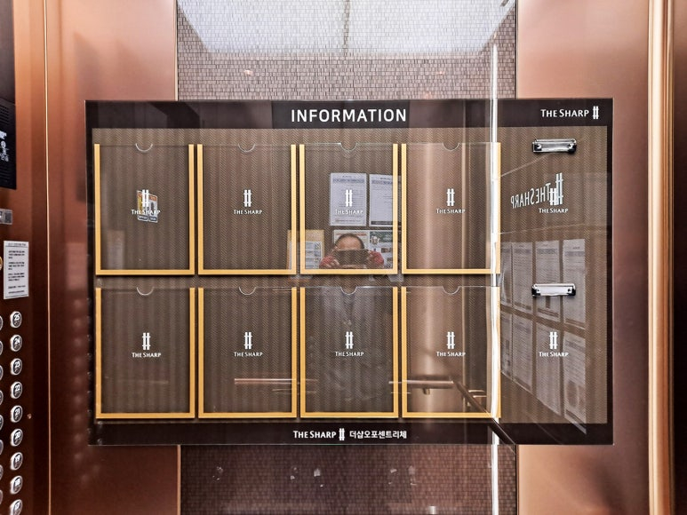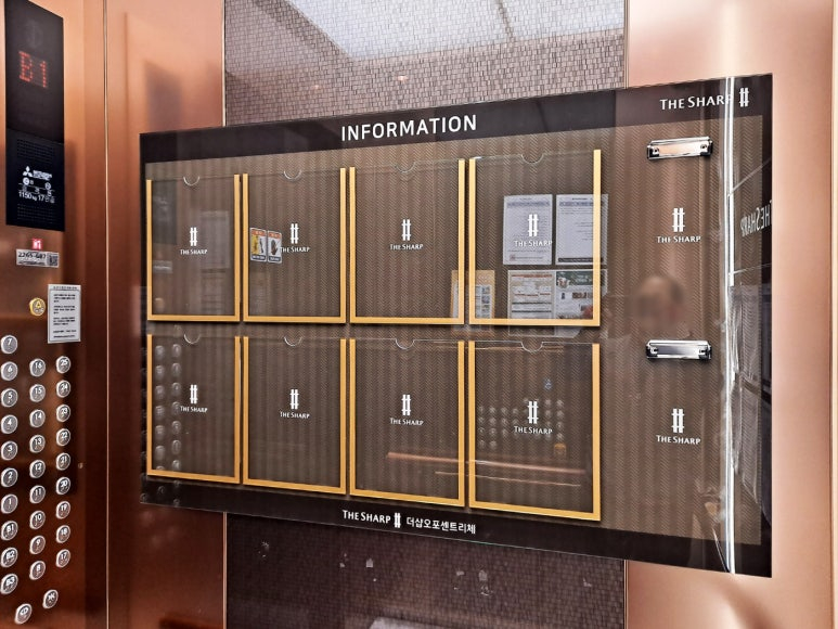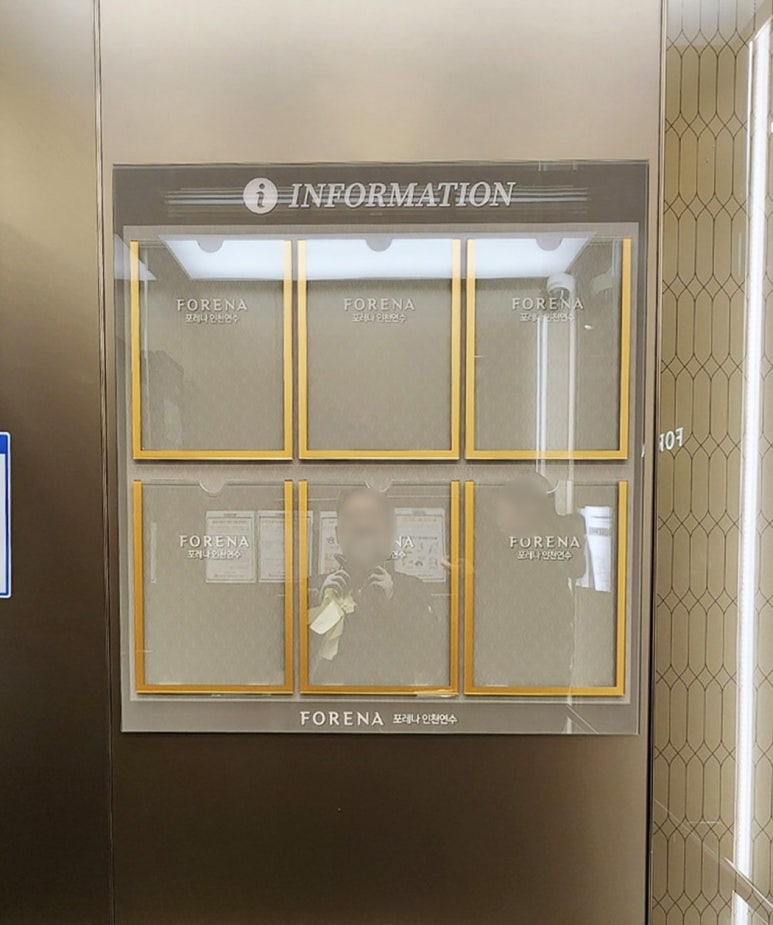 엘리베이터에 시공한 게시판과 다르게 포켓형으로만 제작되었고