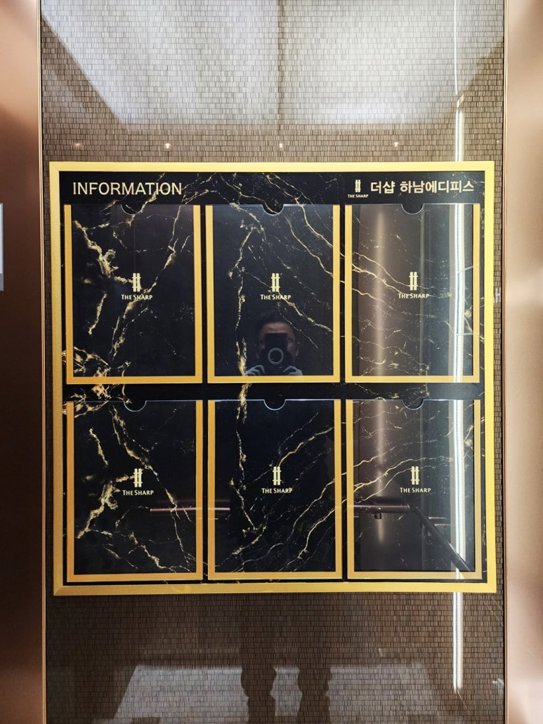 위 게시판은 엘리베이터에 시공해 드렸고 해당 게시판은