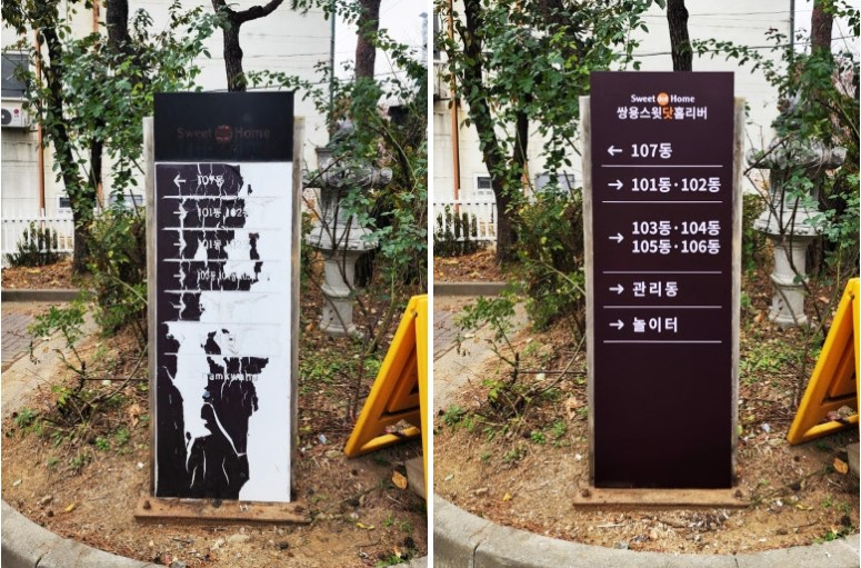 기존 안내판은 지저분하고 글씨가 잘 보이지 않았는데요
