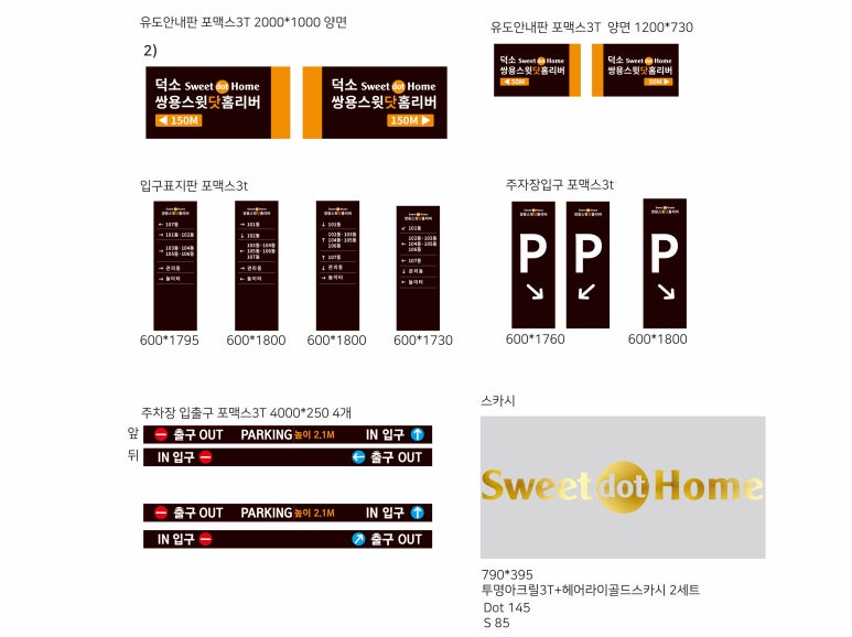 입구, 주차장 입구, 주차장 입출구, 유도 안내판들은 요청하셨던 대로