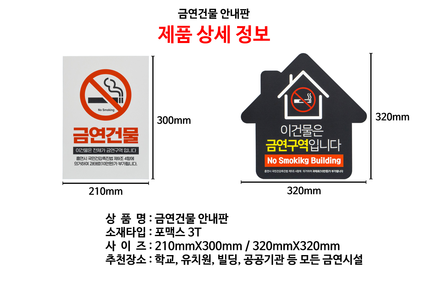금연건물 안내판은 건물 내. 외 금연구역임을 알리기 위해 제작이 되었습니다.