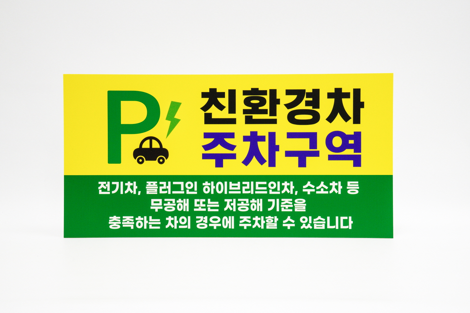 무공해, 저공해 기준에 충족되는 차량 전용 주차구역을 알리는 알림판입니다.