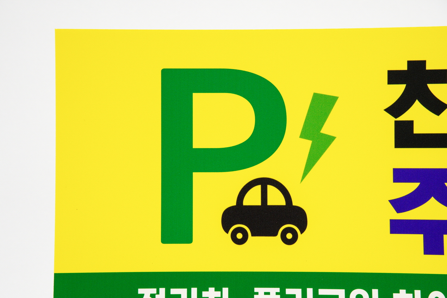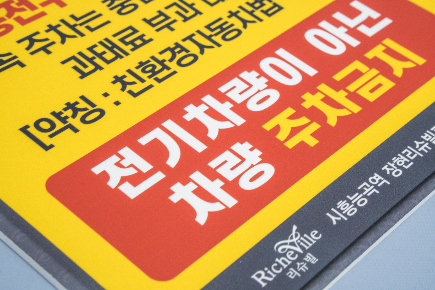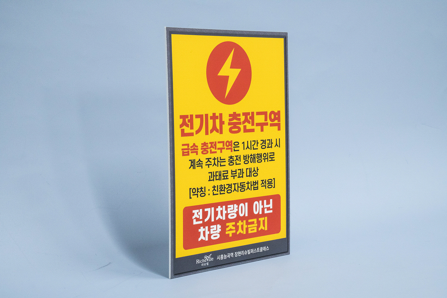 아파트 단지내 전기 차량 이외 다른 차량이 주차하지 못하도록 안내판을 주문해 주셨습니다.