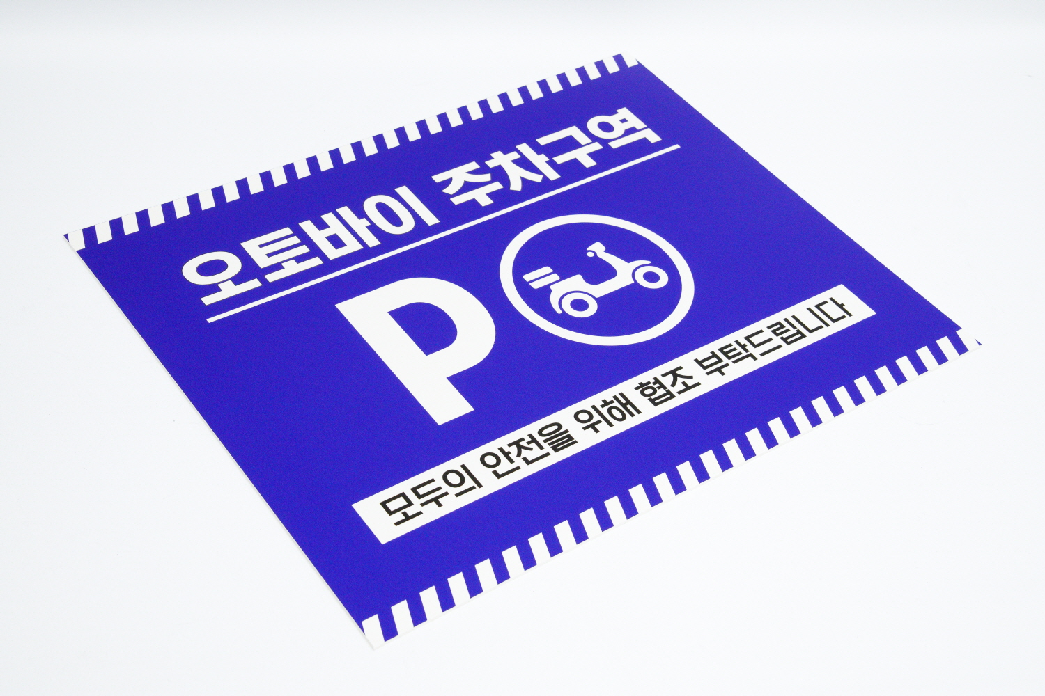 자동차 주차구역 이외에 오토바이 주차구역 표지판도 준비되어 있습니다.