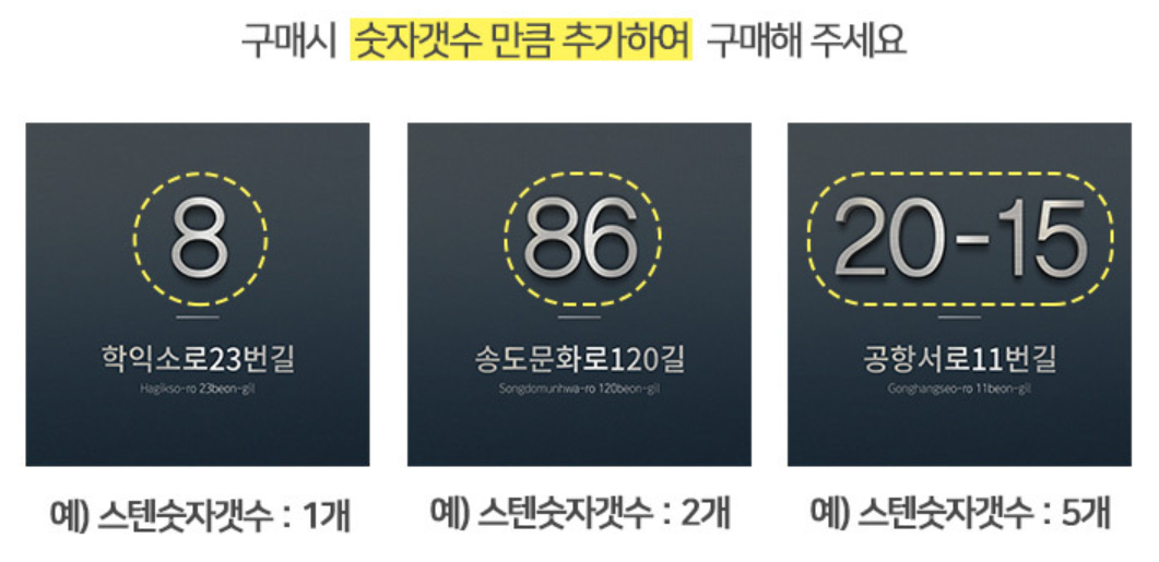 하단에 건물번호가 나눠져 제작되어 나오는 주소판 입니다.