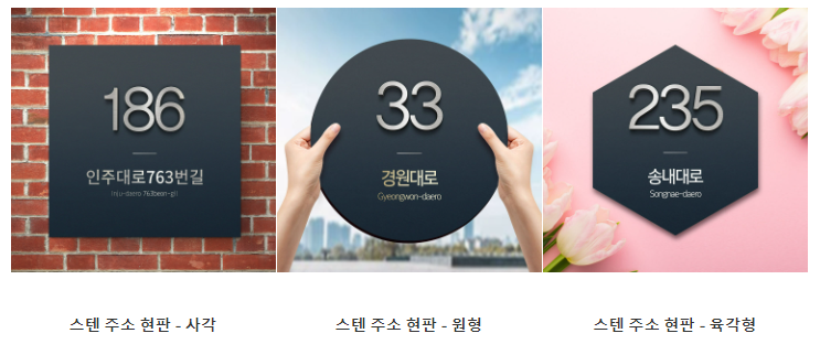 스텐 주소 현판은 사각 타입말고도 원형, 육각형 타입이 있습니다.