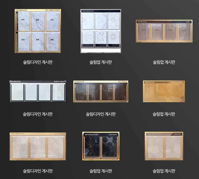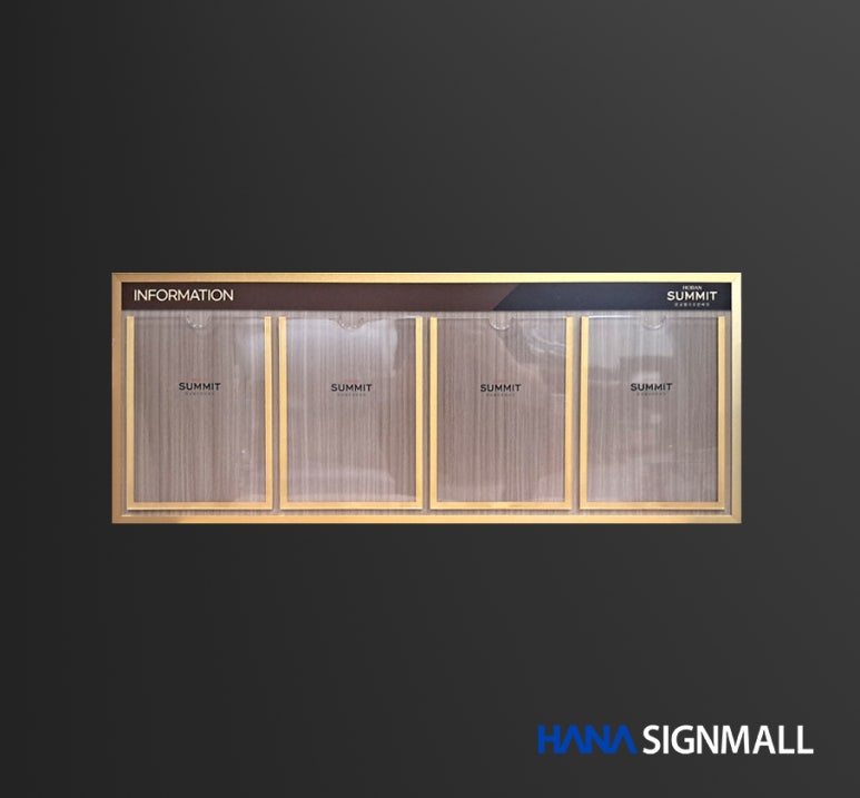 고급스러운 골드 몰딩으로 제작된 SUMMIT의 슬림업 게시판 4구는