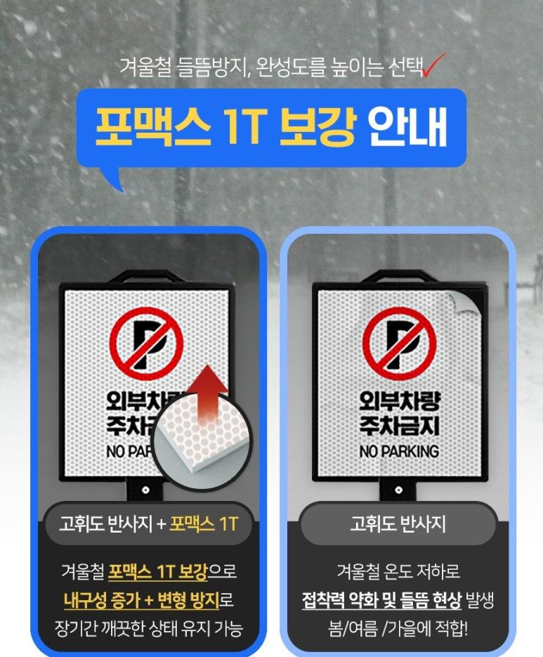 하나사인몰 고휘도 반사지는 겨울철 온도저하로 인해 포맥스 + 고휘도 반사지를 사용하여