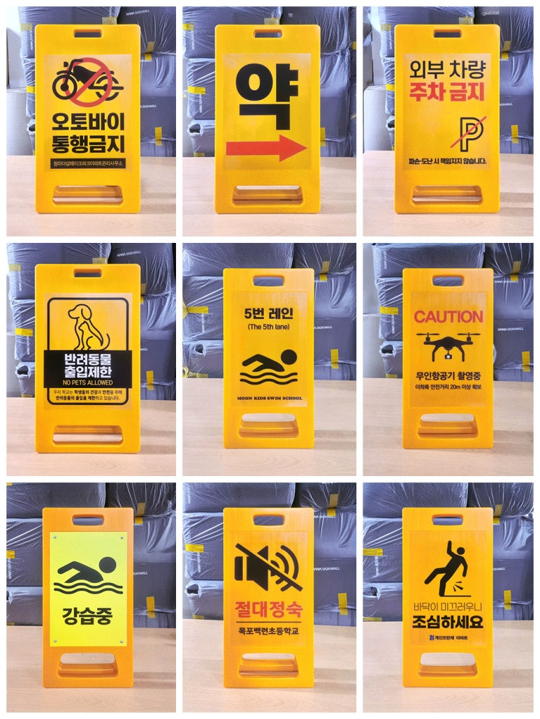 위 상품들 외에도 다양한 안내판과 스티커가 있으니